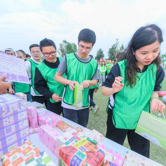 超級過(guò)山車(chē)項目是根據建設公司業(yè)務(wù)特點(diǎn)精心設計的大型主題項目。4個(gè)小團隊分別利用道具搭建一個(gè)長(cháng)大于6米高不小于1.5米的過(guò)山車(chē),將籃球從起點(diǎn)最高點(diǎn)運行到最低處,中途球不可以躍出跑道?;顒?dòng)過(guò)程中,隊員們精誠合作,發(fā)揮出策劃、設計、施工、安裝等專(zhuān)業(yè)之所長(cháng),將對待建設項目時(shí)“專(zhuān)業(yè)、高效、嚴謹”的工作作風(fēng)貫徹到底,展現出建設人的專(zhuān)業(yè)素養及團隊作戰能力。 互換禮物