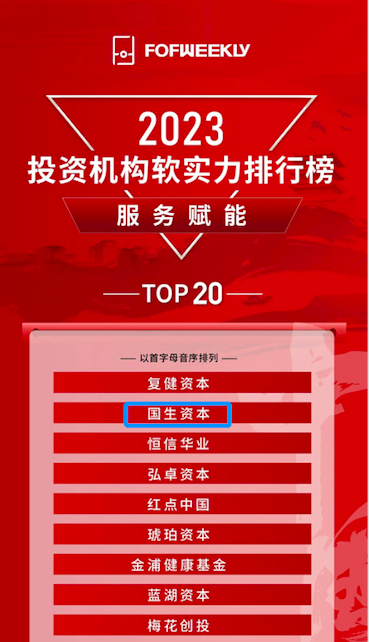 生物城集團國生資本榮耀登上兩大榜單——「2023投資機構軟實(shí)力排行榜 ? 新銳政府引導基金TOP30」「2023投資機構軟實(shí)力排行榜 ? 服務(wù)賦能TOP20」
