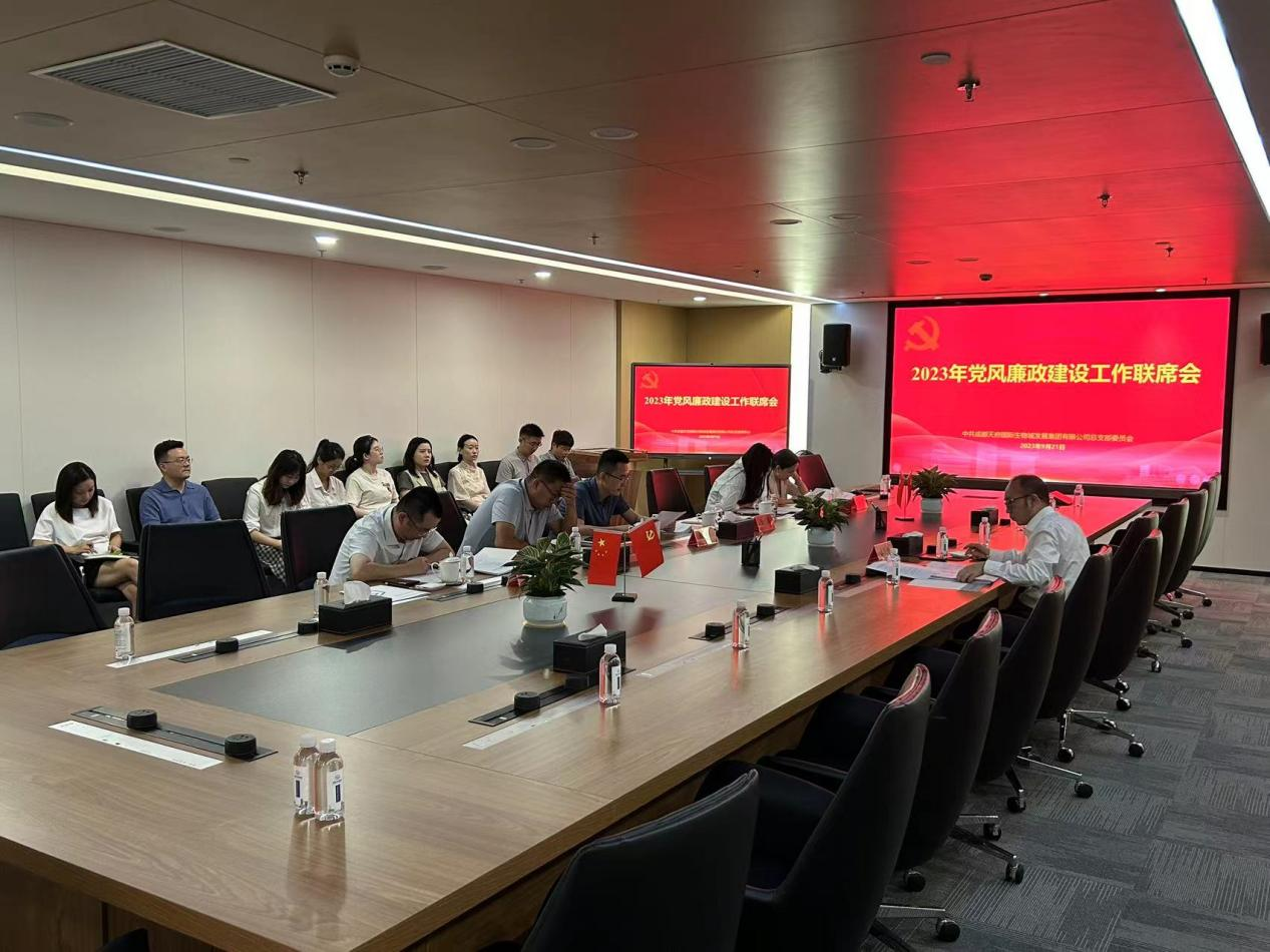 會(huì )議傳達學(xué)習了《2023年度成都高新區區屬?lài)衅髽I(yè)廉潔從業(yè)考核細則》等文件精神以及成都高新區2023第4次黨風(fēng)廉政推進(jìn)會(huì )會(huì )議精神,并部署生物城集團下一步紀檢監察工作。