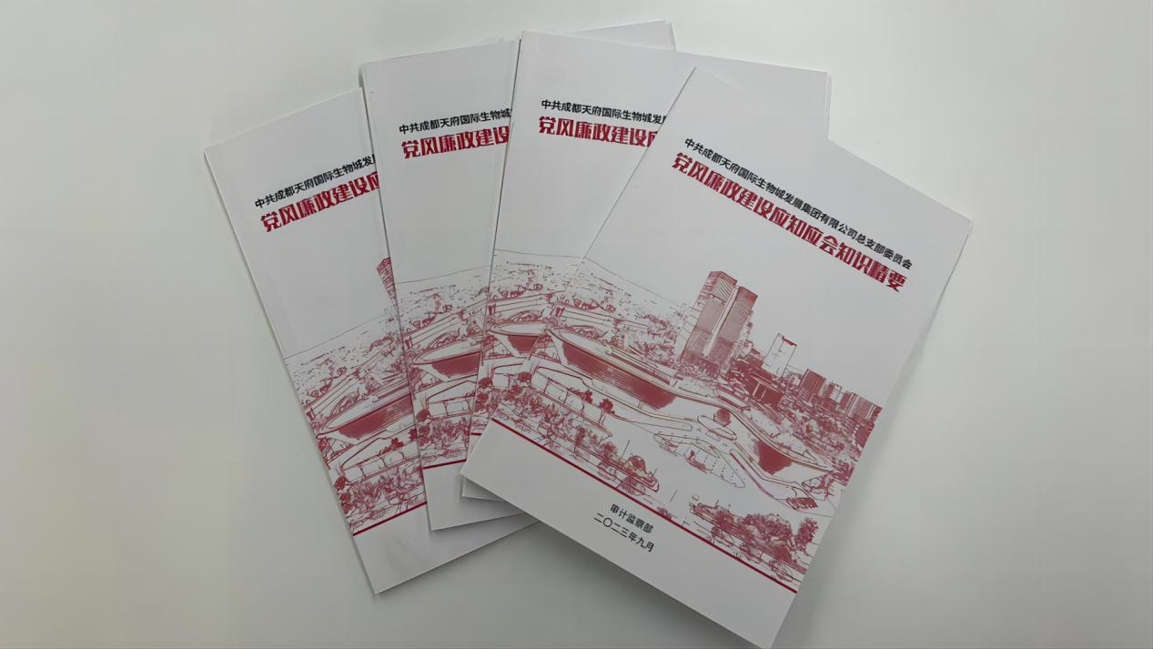 一項項清晰明了的要求、一本本制作精良的手冊、一條條精心編排的必學(xué)內容,聚焦打造忠誠干凈擔當的高素質(zhì)員工隊伍,成都天府國際生物城發(fā)展集團有限公司(以下簡(jiǎn)稱(chēng)“生物城集團”)立足實(shí)際、創(chuàng )新形式、豐富載體,精心編印了《黨風(fēng)廉政建設應知應會(huì )知識精要》手冊。